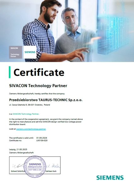Partner technologiczny Siemens – licencjonowany producent SIVACON S8
